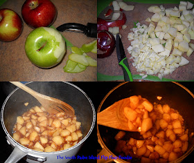 Peel and core apples, cutting all but one half of one apple into bite sized chunks.